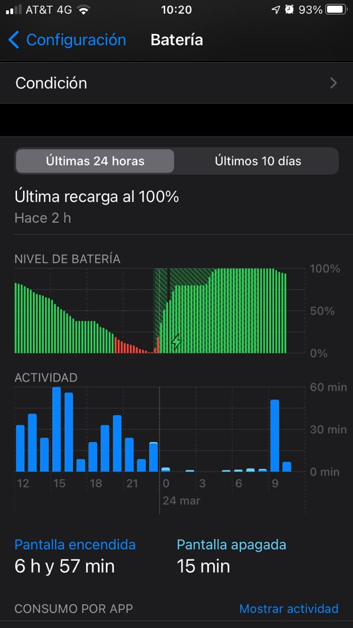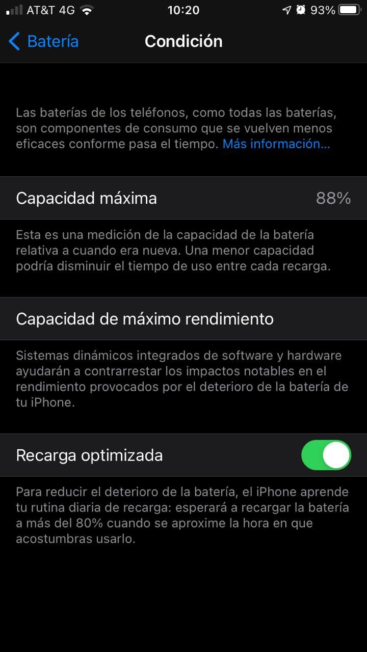 Con iOS 11 o posterior, puedes verificar la vida útil general de tu batería en Configuración> Batería> Estado de la batería> Capacidad máxima. También los niveles de carga de los últimos días e incluso el porcentaje de tiempo que pasas en cada aplicación en tu celular. Esto te ayudará a decidir si invertir o no en una batería nueva.