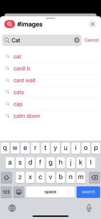 - Pulsa Buscar imágenes para buscar un GIF específico o introduce una palabra clave.
