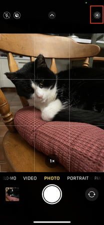 - Toma una Live Photo con la aplicación de la cámara y toca el ícono de la diana en la parte superior de la pantalla para que se vuelva amarillo.
