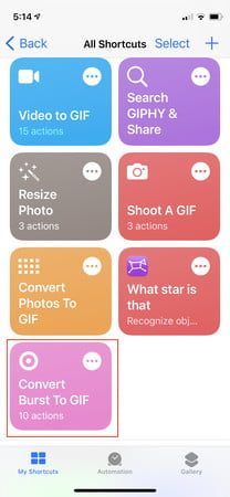 - Busca y descarga el acceso directo Convertir ráfaga a GIF. Mientras lo haces, descarga el acceso directo Convertir video a GIF.