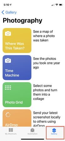 - Inicia la aplicación Atajos: viene preinstalada en tu teléfono con iOS 12 y posterior.