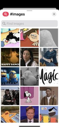 - Pulsa Buscar imágenes para buscar un GIF específico o introduce una palabra clave.