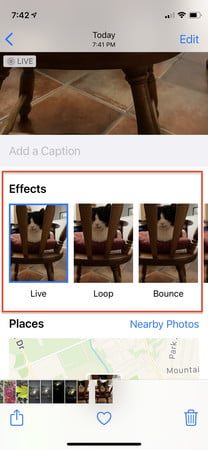 - Para convertir la foto en un GIF, abre la Live Photo y desliza hacia arriba desde la parte inferior.