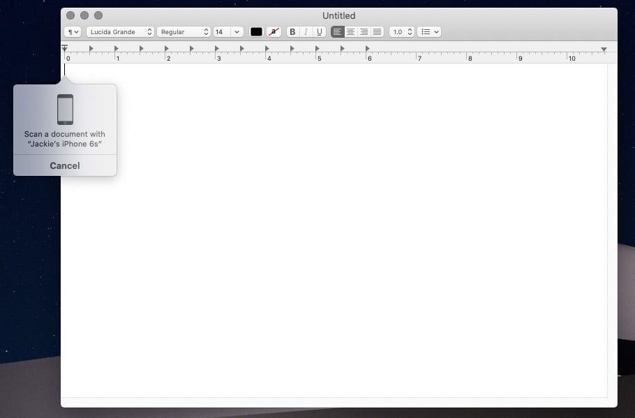 Continuity Camera es una función en MacOS e iOS que te permite abrir la cámara en tu iPhone (u otro dispositivo iOS) desde una Mac cercana, y luego transferir esa foto o escanear a un documento abierto de Mac.