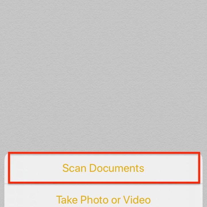- Desde tu nueva carpeta Escanear, desliza hacia abajo nuevamente para tocar el botón Más de tres puntos y selecciona Escanear documentos para activar la cámara.