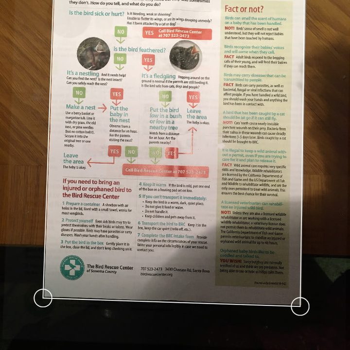- Después de que la cámara dispara la primera página, la aplicación dice Listo para escanear la parte inferior. Quita la primera página para que pueda capturar la segunda.