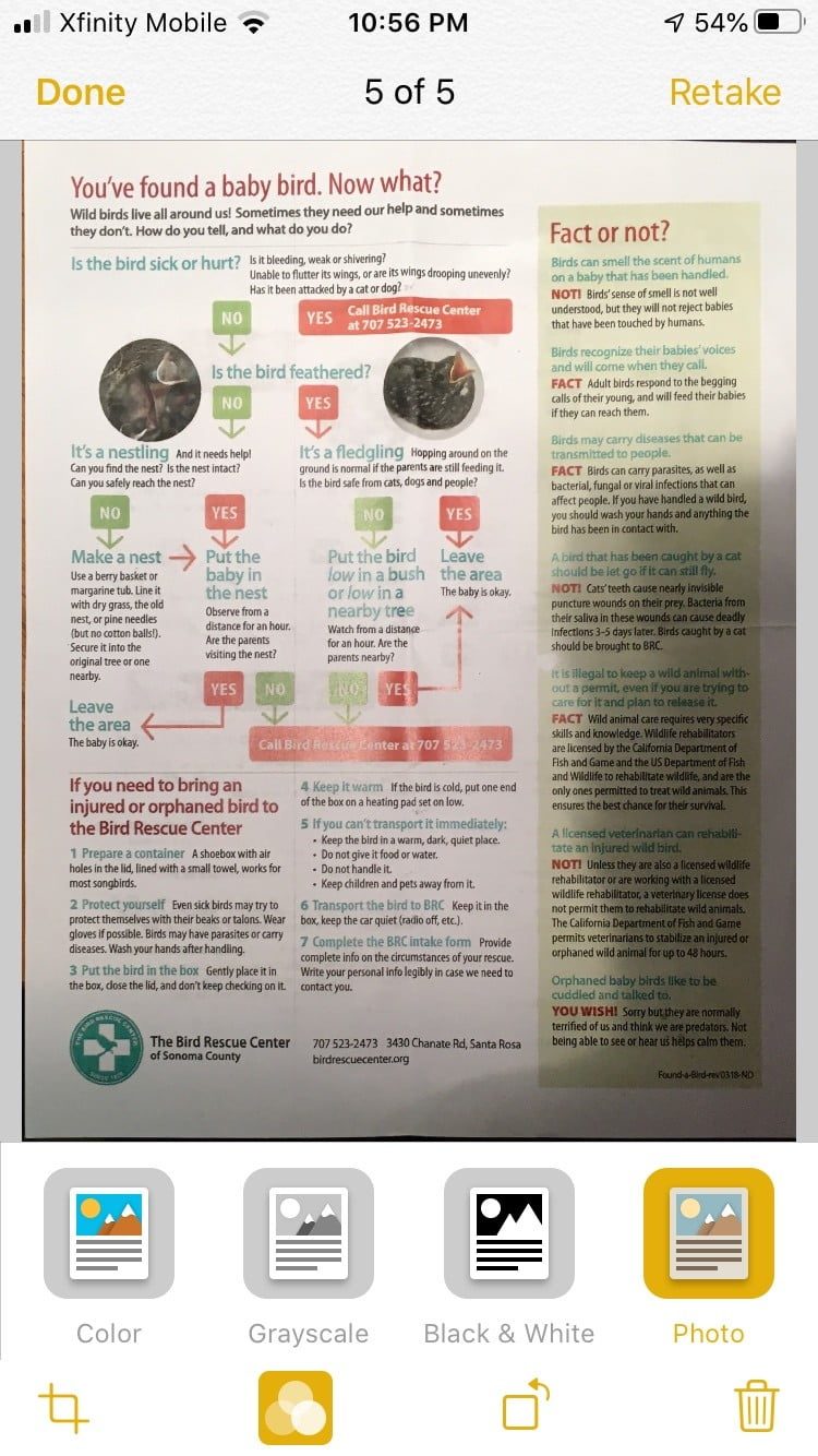 Cuando termines de escanear, todavía puedes hacer ajustes con el filtro, recorte o rotación, o desecharlo.
