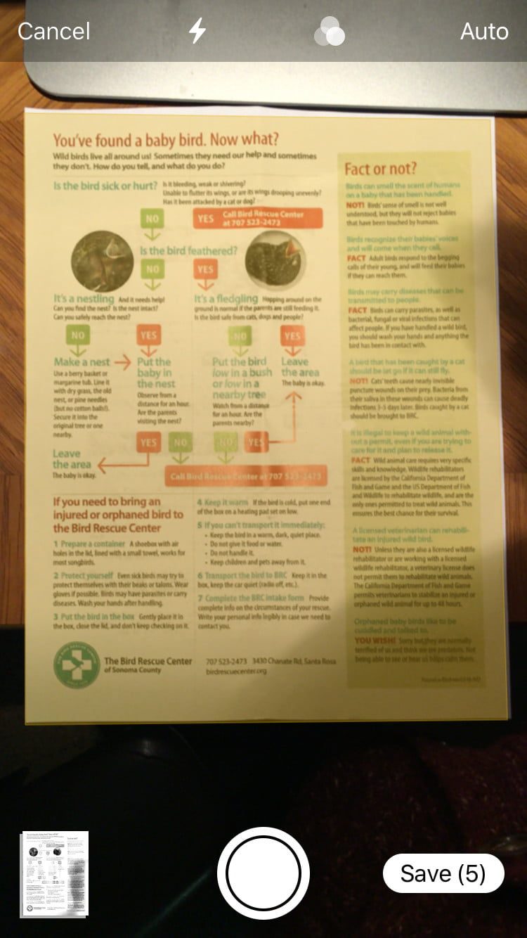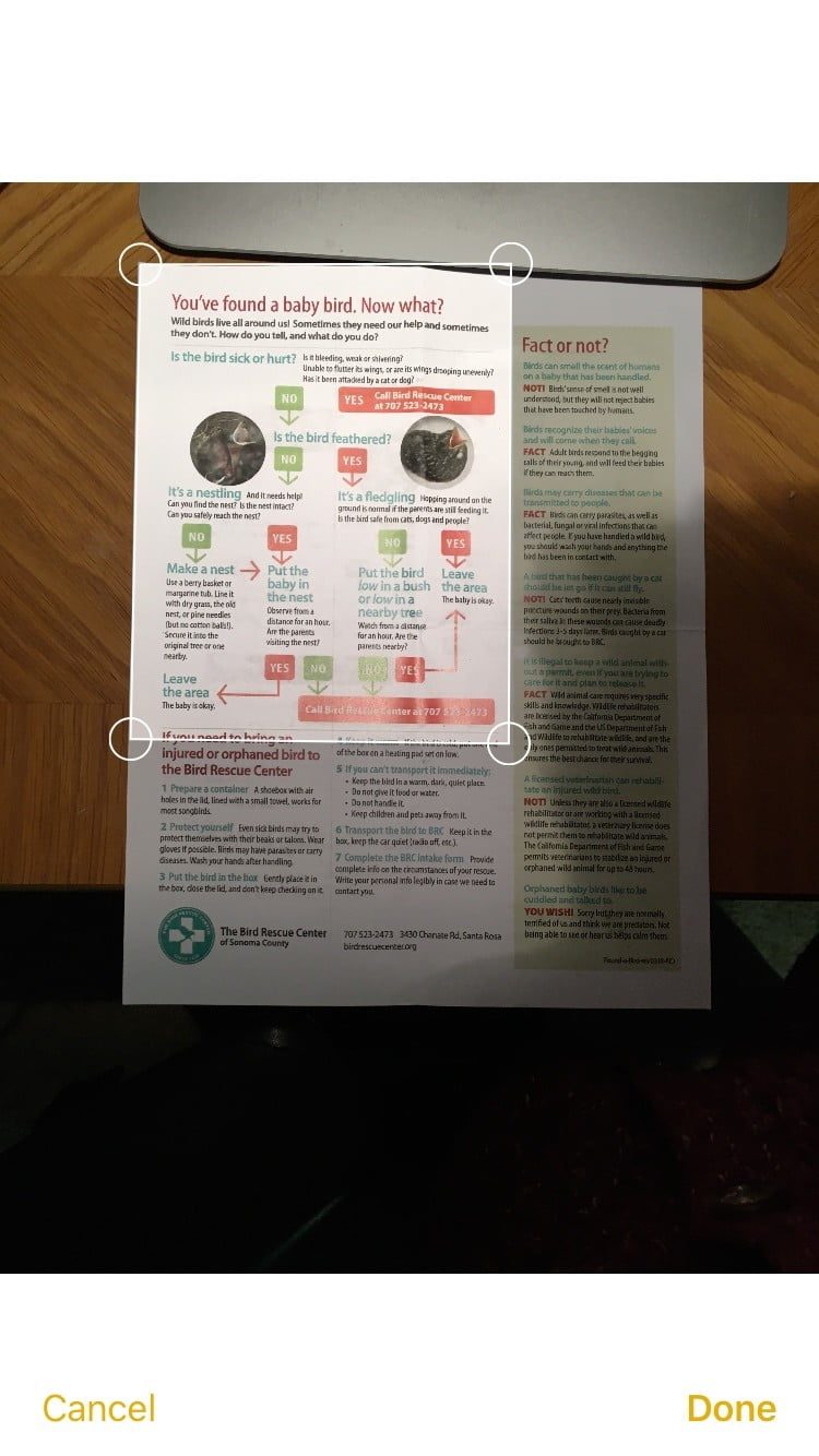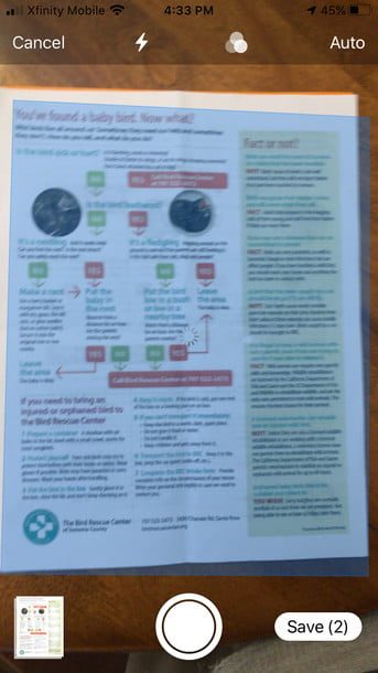 - Sitúa el documento frente a la lente de la cámara en tu iPhone o iPad y espera a que termine el proceso. Si tienes que capturar manualmente un documento, use uno de los botones de volumen.