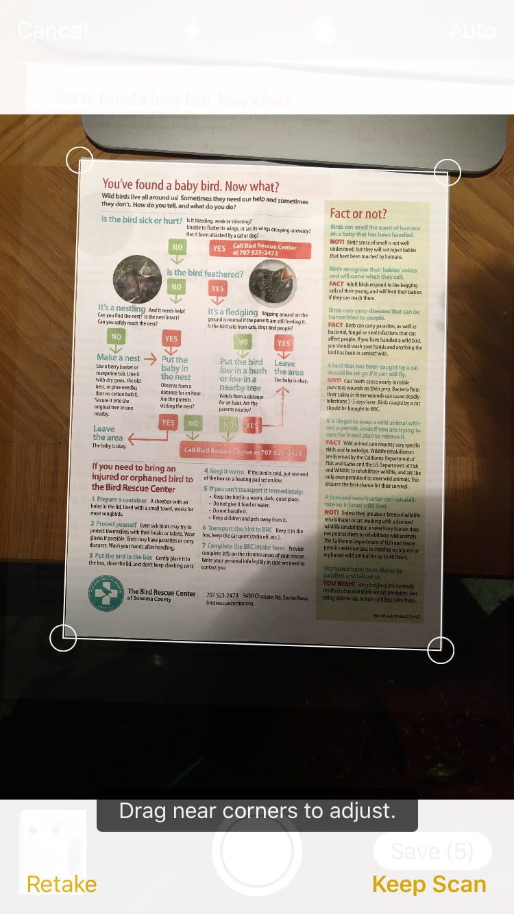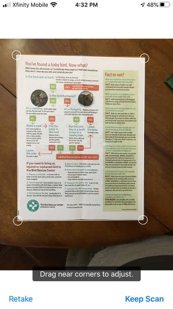 - Arrastra las esquinas para ajustar el escaneo para que se ajuste a la página, o para capturar solo la parte del documento que desea, y luego toque Conservar escaneo.