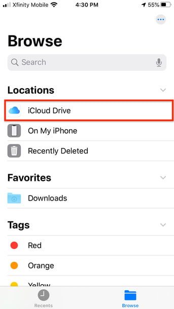- Localiza la aplicación Archivos en tu teléfono. En ella puedes ver todos los archivos de iCloud, de la misma manera que en tu Mac.