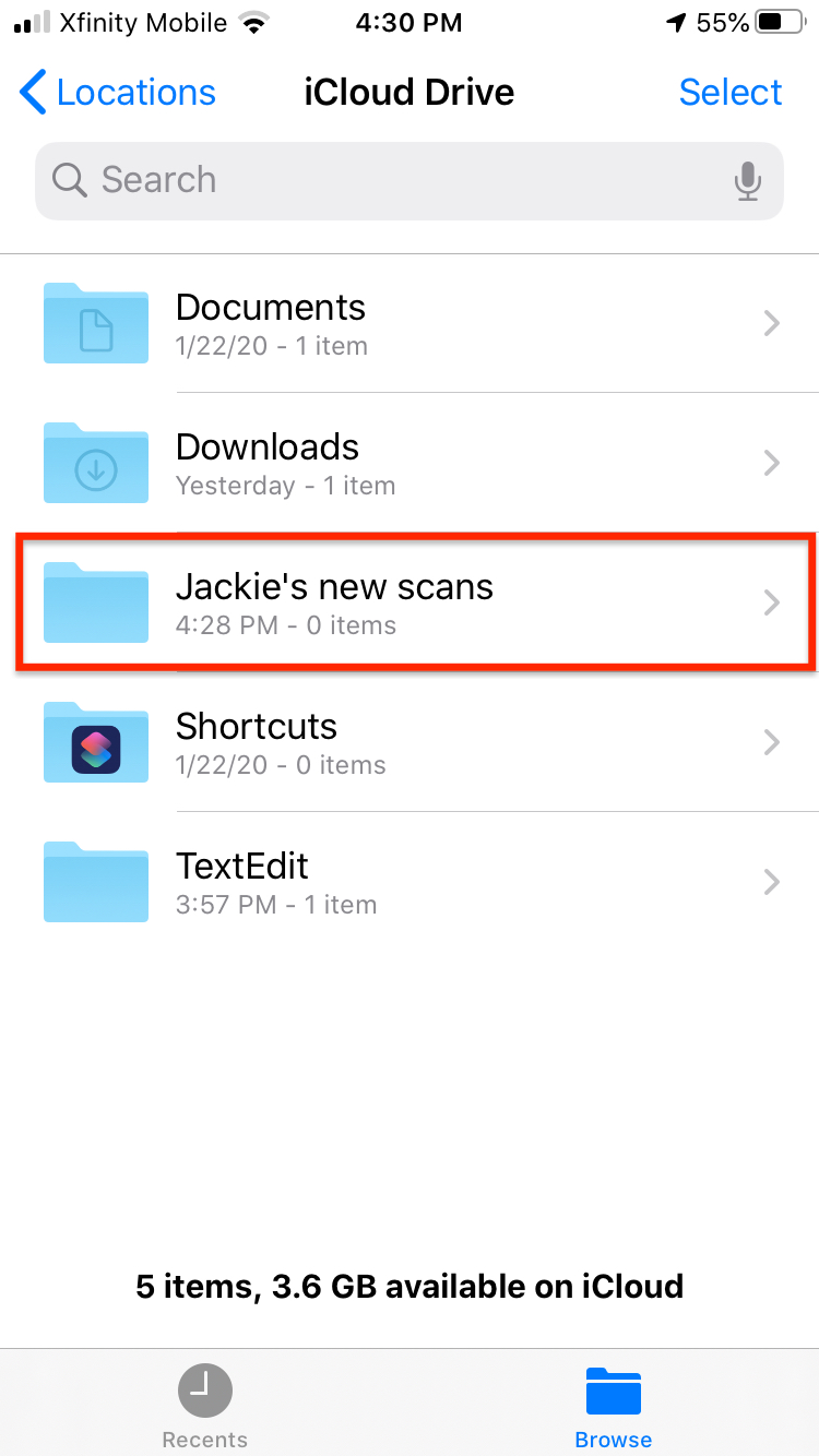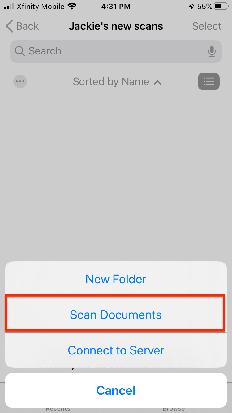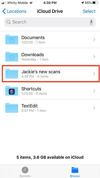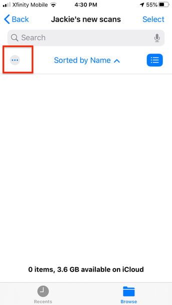 - Pulsa el botón Guardar y subirá el nuevo escaneo en tu carpeta de escaneos, donde estará visible en todas partes donde puedas acceder a iCloud. Desde allí, puedes seleccionar el documento para cambiarle el nombre.