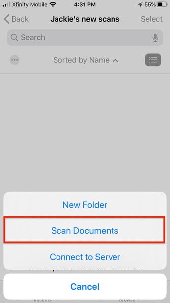 - Selecciona Nueva carpeta, nombra tu carpeta Escanear y luego toca Listo.