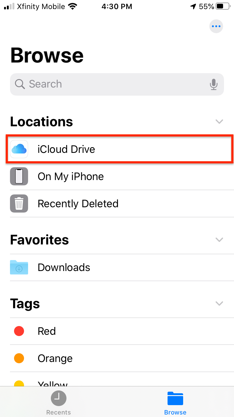- Con la aplicación abierta, selecciona la ubicación de iCloud Drive.