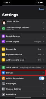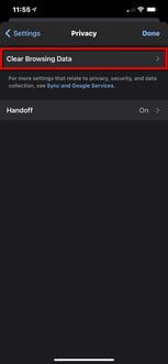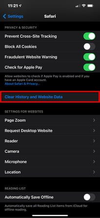 Paso 3: selecciona Borrar historial y datos del sitio web.