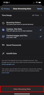 Paso 6: elige Borrar datos de navegación nuevamente ubicado en la parte inferior.