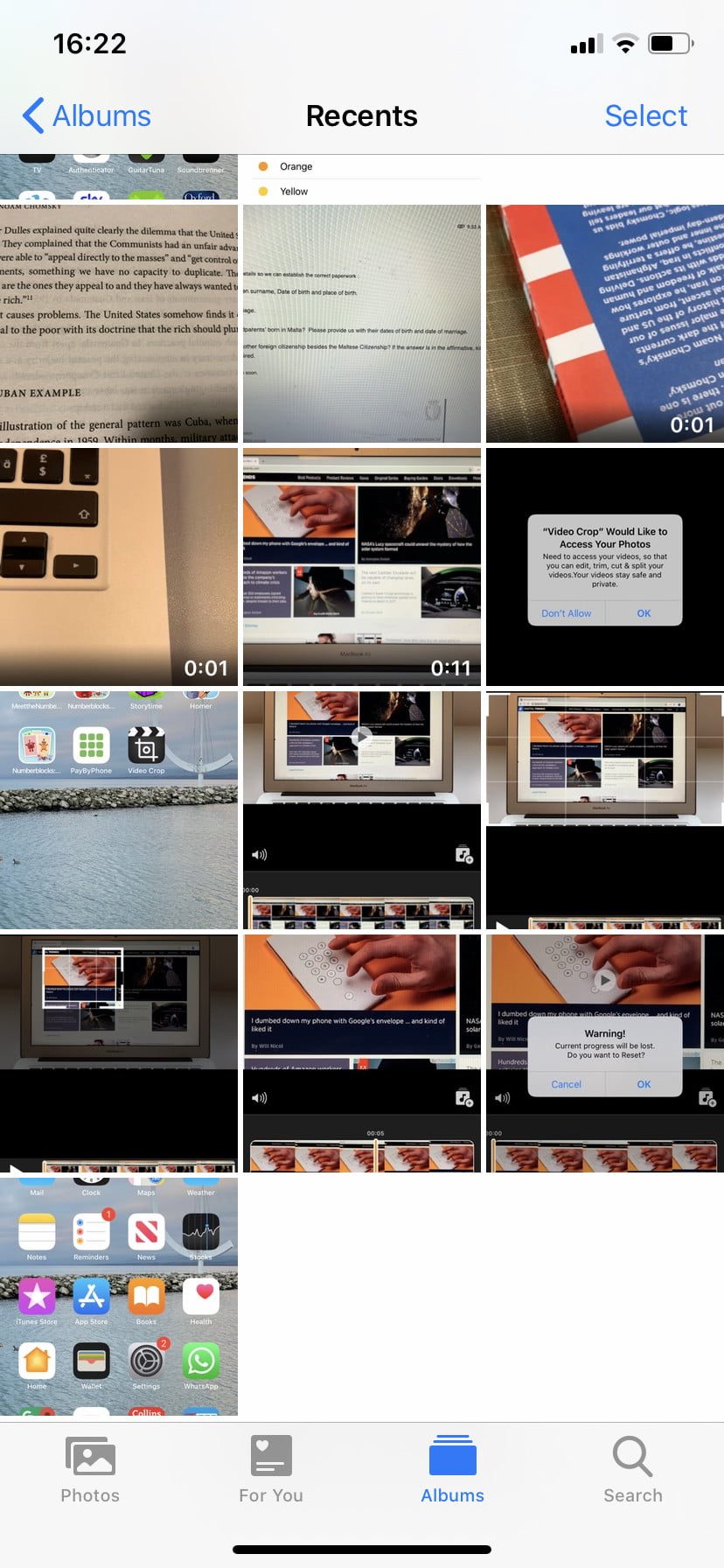 Paso 1: Abre Video Crop y pulsa OK cuando se te pregunte si deseas que la aplicación acceda a tus fotos. Después de omitir el anuncio de la versión Pro, selecciona el vídeo que deseas recortar.