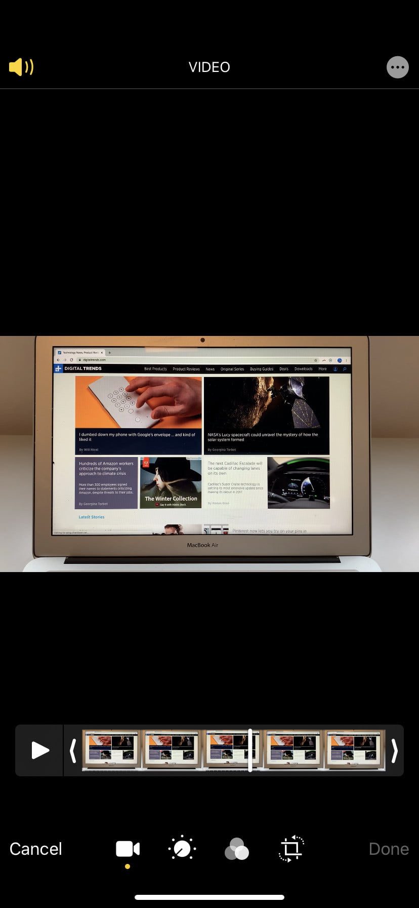 Desafortunadamente, no puedes usar la aplicación Cámara en el iPhone para ‘recortar previamente’ los videos mientras los estás filmando. Sin embargo, una vez que se hayan filmado, puedes recortarlos usando la aplicación Fotos, siempre que estés ejecutando iOS 13 o posterior. Esto es lo que debes hacer: