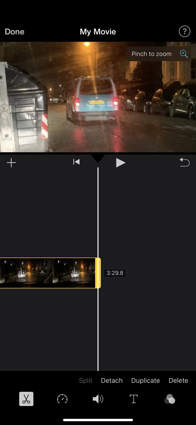 Paso 4: desliza el vídeo hacia adentro o hacia afuera para acercarlo y alejarlo (esto efectivamente lo recorta). toca Listo en la esquina superior izquierda de la pantalla una vez que haya terminado.