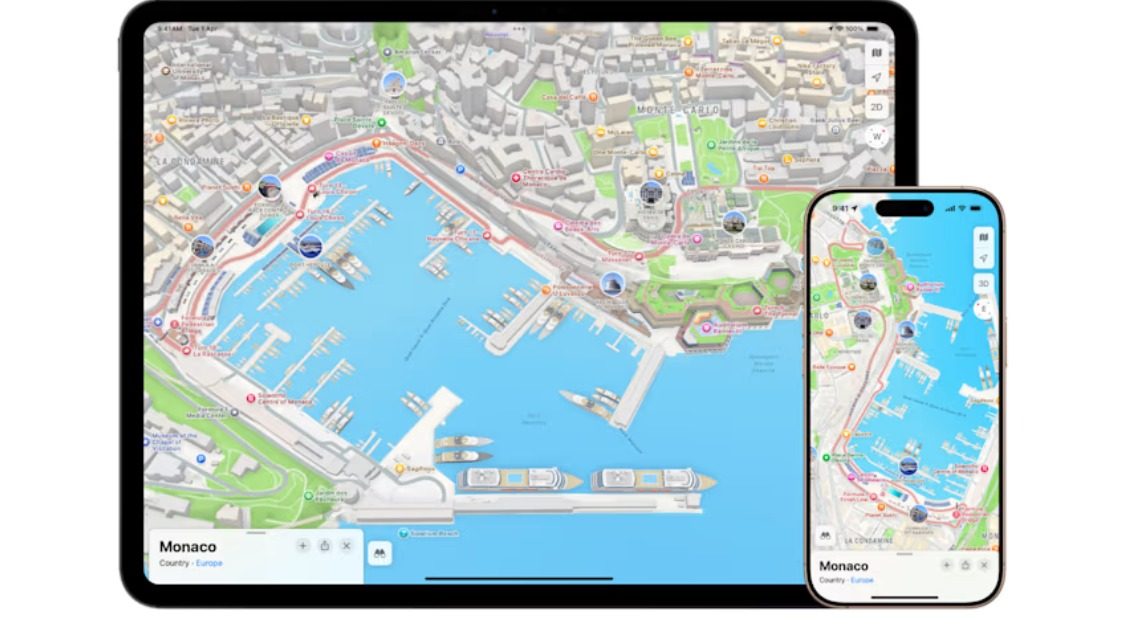 A partir de hoy, los usuarios pueden explorar Mónaco, incluidos los monumentos monegascos en 3D, como el Casino de Montecarlo, el Hotel de Paris Monte-Carlo, el Yacht Club de Mónaco y el F1 Paddock Club en Apple Maps. El modo oscuro también ofrece a los usuarios una vista nocturna de Mónaco con un resplandor a la luz de la luna que se activa al anochecer.