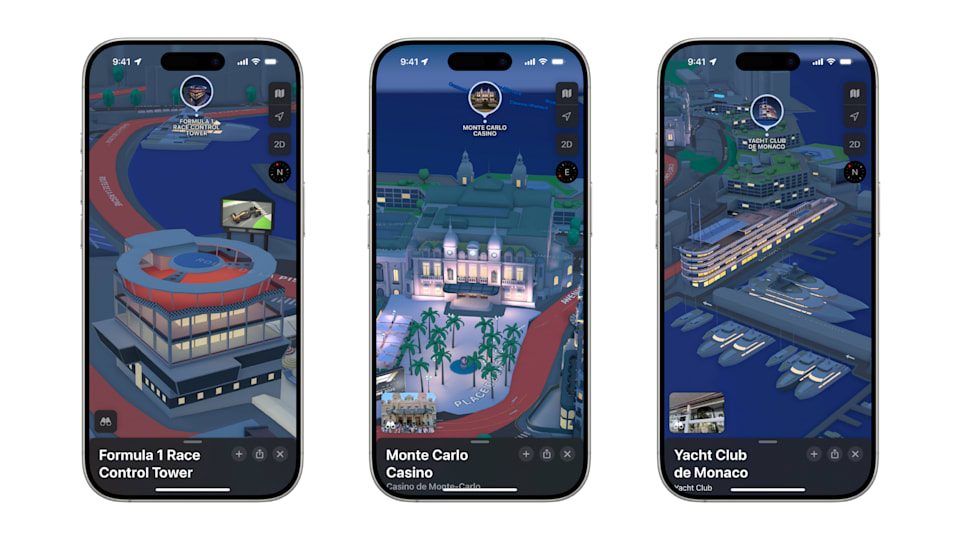 A tiempo para el próximo Gran Premio de Mónaco, que tendrá lugar entre el 23 y el 25 de mayo, Apple Maps también ofrece a los usuarios, asistentes y fanáticos de la Fórmula 1 una forma detallada de explorar y disfrutar de la carrera. El autódromo se destacará en Apple Maps e incluirá detalles como marcadores para cada una de las curvas icónicas del circuito, junto con representaciones en 3D de tribunas, pasarelas, la línea de meta y más. Apple Maps también compartirá avisos como cierres de carreteras para ayudar a los asistentes a moverse lo más fácilmente posible.