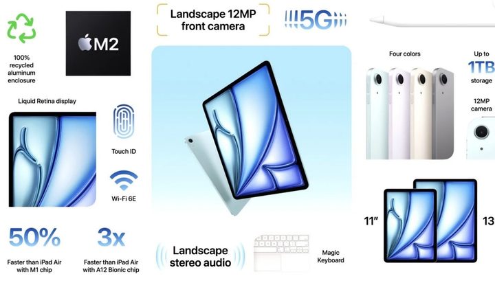 Ambas tabletas estarán en colores azul, morado, luz de estrellas y gris espacial. Esta es la primera actualización del iPad Air desde que Apple lanzó la versión M1 hace dos años