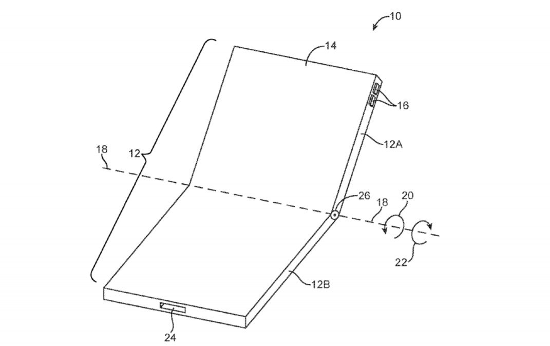 La patente revela dispositivos con dos y tres pantallas que se doblan gracias a una o dos bisagras, lo que parece indicar que la empresa está pensando en desarrollar dispositivos que permitan tener acceso a una pantalla aún cuando el teléfono o tableta estén doblados hacia adentro o hacia afuera. “La bisagra permitirá que la pantalla sea movida frente a frente o que se den la espalda”, dice parte de la descripción de la patente.