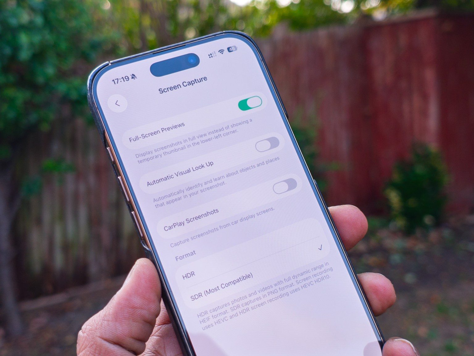 Aunque esta es la opción predeterminada, puede deshabilitarla fácilmente en la configuración navegando a Configuración > General > Captura de pantalla y desactivando la palanca junto a Vistas previas de pantalla completa. Créame, esta es una configuración que la mayoría de la gente querrá deshabilitar, a menos que desee usar IA para comprender más sobre ubicaciones, productos o personas, en una captura de pantalla.