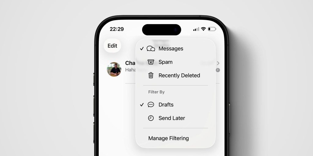 • Mensajes ahora incluye una opción Borradores en la vista de filtro.