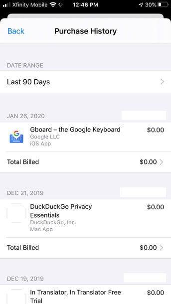 Si alguna vez necesitas usar esa aplicación nuevamente, puedes volver a descargarla de la tienda de aplicaciones cuando lo desees. Las aplicaciones que has descargado o comprado anteriormente lucen un icono Obtener o un icono de nube junto a ellas en la App Store. Puedes ver tu historial de compras completo para volver a descargar cualquier aplicación que hayas utilizado en tu dispositivo en cualquier momento. Ve a Configuración> Nombre de usuario> iTunes y App Store> ID de Apple> Ver ID de Apple> Historial de compras. Puede que tengas que escribir tu ID de Apple o contraseña. Allí verás todas las aplicaciones que has descargado en orden cronológico, tanto de pago o gratuitas. Selecciona un intervalo de fechas y podrás encontrar todas las aplicaciones que bajaste por año y volver a descargar las que hayas eliminado.