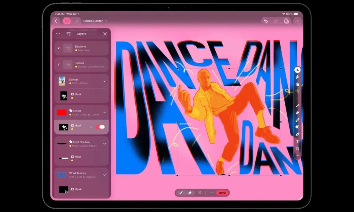 Pixelmator Pro se unió a la gama de Apple tras la adquisición por parte de la compañía el año pasado. Incluye un sistema de edición por capas, herramientas avanzadas de color, máscaras, efectos y soporte para formas vectoriales, todo rediseñado para táctil y Apple Pencil.