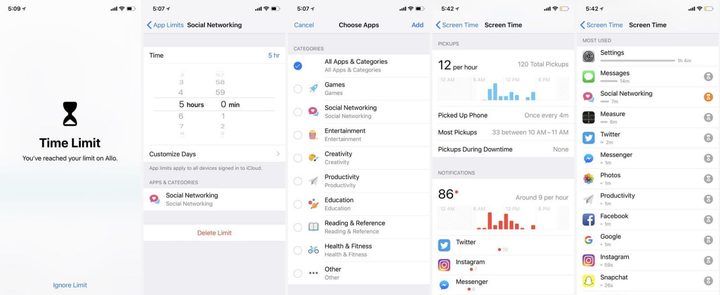 En los últimos años, ha habido una discusión más consciente sobre la adicción a los teléfonos inteligentes y otros dispositivos. Para ayudar a las personas a administrar el uso de su teléfono, iOS 12 agrega una nueva sección en la aplicación de configuración llamada Screen Time. Ofrece un resumen del uso de tu teléfono, y la capacidad de establecer límites de tiempo en apps específicas.