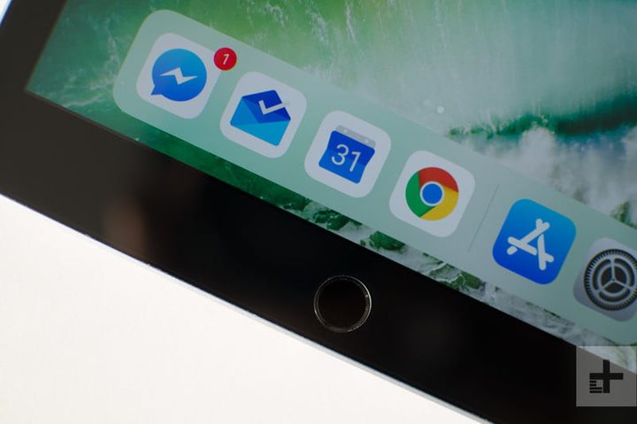 Todo lo demás es exactamente igual al iPad del año pasado, desde las dimensiones (9.4 x 6.6 x 0.29 pulgadas), el peso de 1.03 libras, hasta el botón de inicio de Touch ID y las bocinas estéreo de la parte inferior. El botón de bloqueo y desbloqueo se encuentra en la parte superior de la tableta (cuando se sostiene en modo retrato), y en el borde derecho está el control de volumen. El puerto Lightning se encuentra en la parte central inferior.