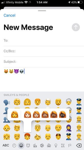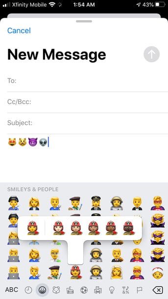 Si tocas y mantiene presionadas ciertas letras, aparecerá una serie de caracteres alternativos, por ejemplo, los acentos, donde solo basta con deslizar el dedo para seleccionar el correcto. No todas las teclas tienen un carácter alternativo. Los caracteres alternativos también funcionan para la puntuación e incluso los emoji: en el teclado Emoji, si tocas y mantienes presionado el emoji, obtendrás varias alternativas de tonos de piel y, por ejemplo, puedes elegir una para el tono de piel predeterminado. Esta función se usa idénticamente en iOS 13 y iOS 14.
