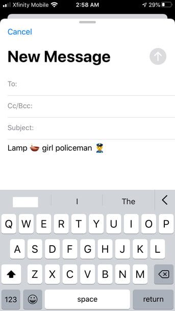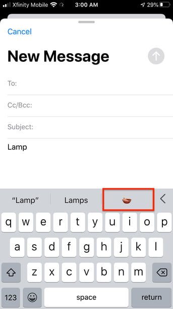A veces resulta realmente difícil encontrar el emoji adecuado que estás buscando y que expresa la emoción correcta para tu mensaje. Mientras que en una Mac puedes usar un término de búsqueda para localizar un emoji específico, en el iPhone, no hay un cuadro de búsqueda de texto. Sin embargo, si escribes la palabra en el mensaje, iOS sugiere automáticamente el emoji más cercano a ese concepto. Puedes usar la palabra o el emoji, o ambos juntos. Cuando veas aparecer una de las sugerencias, presiona primero la barra espaciadora. Las sugerencias permanecen allí y luego puedes tocar una para tener tanto la palabra como el emoji en tu mensaje. No tienes que saber el nombre exacto del emoji. Para que esto funcione, debes habilitar el teclado predictivo para que puedas ver qué emoji aparece con el teclado en respuesta a tu palabra. Esta función se usa idénticamente en iOS 13 y iOS 14.