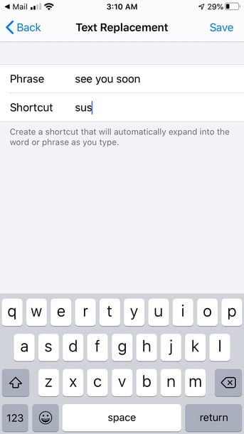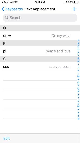 El reemplazo de texto es una función de teclado nativo de iOS y puedes configurarla en las opciones del teclado. Ve a Configuración> General> Teclados> Reemplazo de texto para añadir abreviaturas de las frases que usas con frecuencia como, “muchas gracias” y el atajo “MG”. Esta función se usa idénticamente en iOS 13 y iOS 14.