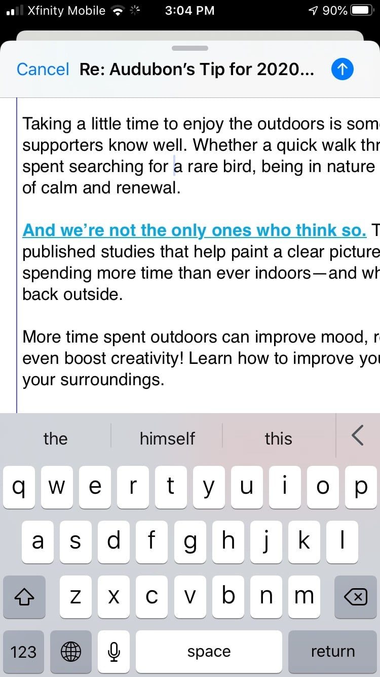 Puedes transformar el teclado en un trackpad tocando y manteniendo el dedo en la barra espaciadora. Eso te permitirá arrastrar el dedo para mover el cursor por el texto. Si tienes un dispositivo que soporta 3D touch, puedes tocar y mantener presionado en cualquier parte del teclado para invocar la acción del panel táctil, y las teclas quedarán en blanco. Además de permitirte mover el cursor más fácilmente, esta función le facilita la selección de texto. Esta función se usa idénticamente en iOS 13 y iOS 14.