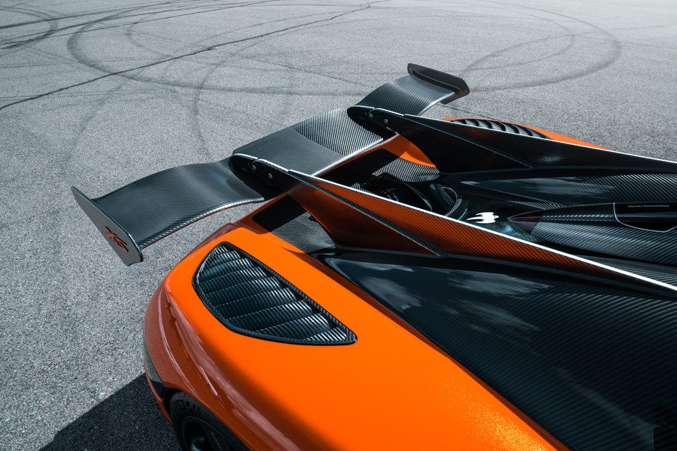Los EE.UU. no se consideraban como un mercado lo suficientemente grande como para que valiese la pena hacer todos estos trámites Pero Koenigsegg ha decidido ahora priorizar sus ventas en los Estados Unidos. Y todo parece haber comenzado con la fabricación de este Agera XS, el pasado mes de noviembre. Se ha hecho uso de un chasis número 128; se ha personalizado para su propietario con pintura naranja Karosserie, con un interior negro y también. Además, se le ha puesto el más grande alerón trasero jamás montado en una producción de Koenigsegg.