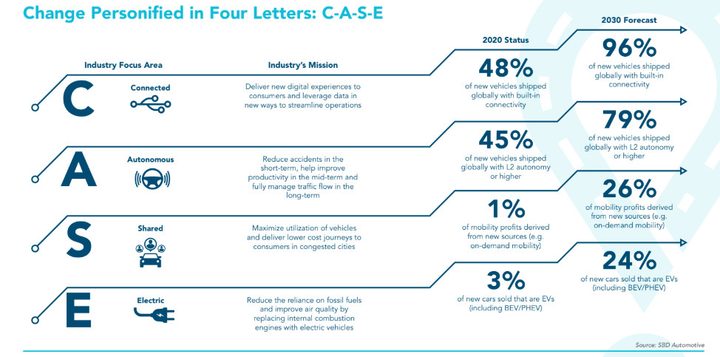 - Predice que la conectividad de los vehículos incorporados crecerá notablemente del 48% de todos los automóviles globales nuevos a casi el 96 por ciento en 2030.