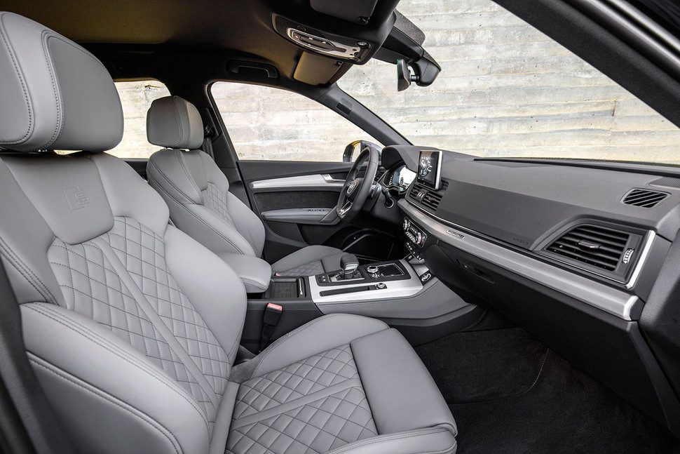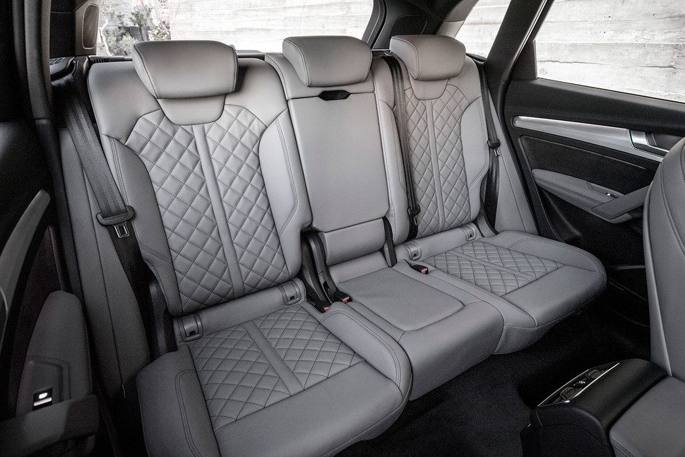 La cabina del Q5 es cómoda y espaciosa, perfecta para cuatro personas, y con espacio de sobra para la carga. Los asientos traseros se pueden ajustar, y dependiendo de cómo estén colocados, pueden dejar entre 19.4 y 21.5 pies cúbicos de volumen para la carga. Si acarreas más cosas que personas, el banco trasero se pliega hacia abajo para aumentar ese volumen hasta los 54.7 pies cúbicos.