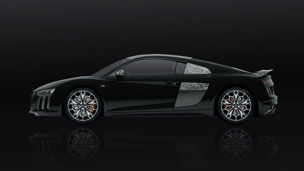 Este R8 deportivo de 610 caballos de fuerza cuenta con un motor V10 de 5.2 litros —el mismo motor que el modelo estándar— pero cuenta además con una variedad de cambios cosméticos que lo diferencian del estilo del R8 estándar, incluyendo llantas personalizadas con el emblema de Lucis, y unos paneles acentuados con diseños Arabescos en negro brillante.