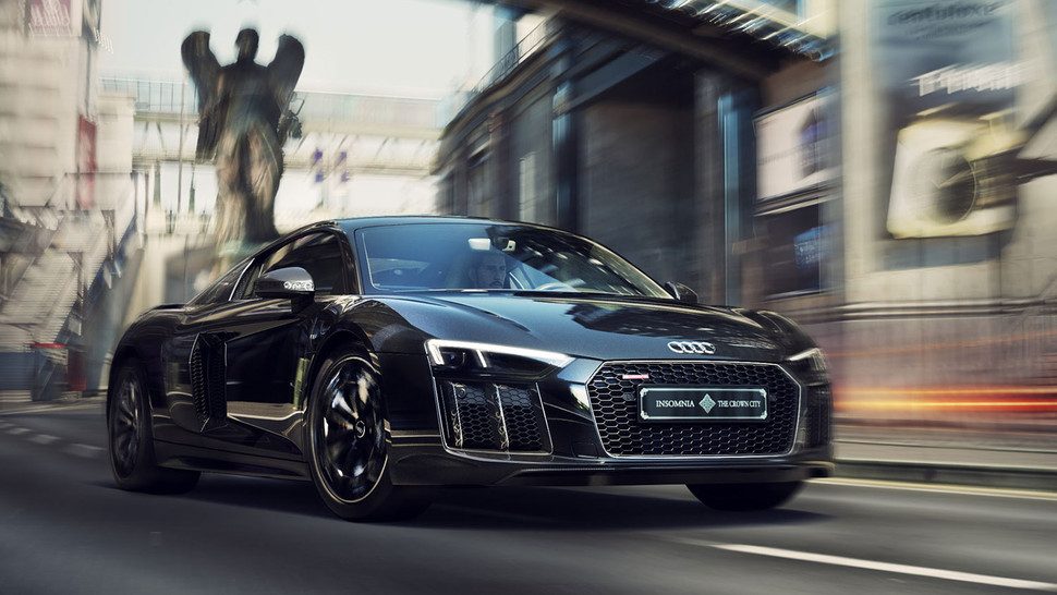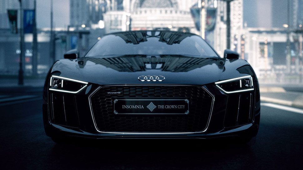 El R8 no aparece en el Final Fantasy, en donde el método de transporte es el Regalia, el cual se transforma en un vehículo volador cuando la ocasión lo requiere. Parece que la inclusión de un Audi R8 responde más la puesta de un producto en concreto que cualquier otra cosa.