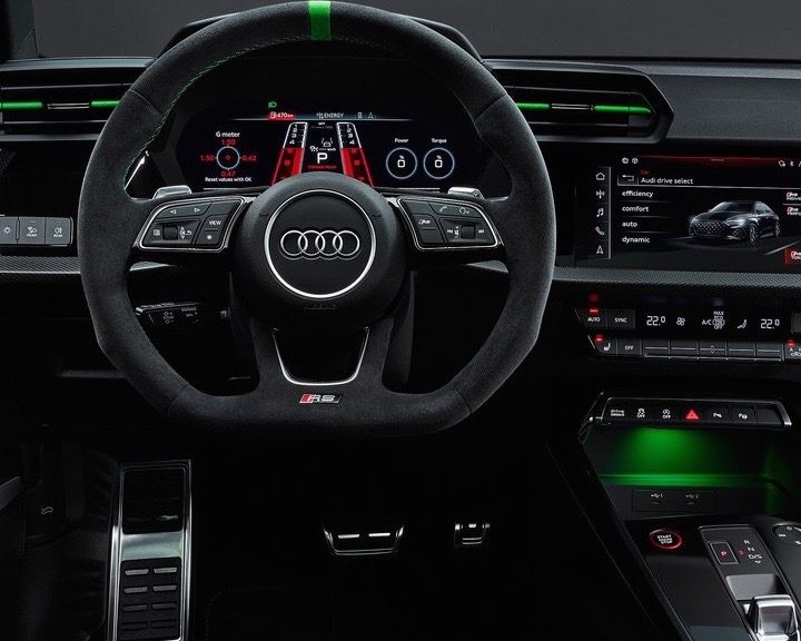 Audi dice que su RS3 2022 puede acelerar hasta las 62 mph (100 km/h) en 3.8 segundos, característica que lo convertiría en el vehículo más veloz en su clase, y que es capaz de alcanzar 155 mph (250 km/h) en forma estándar o 174 mph (280 km/h) con un paquete opcional de performance.