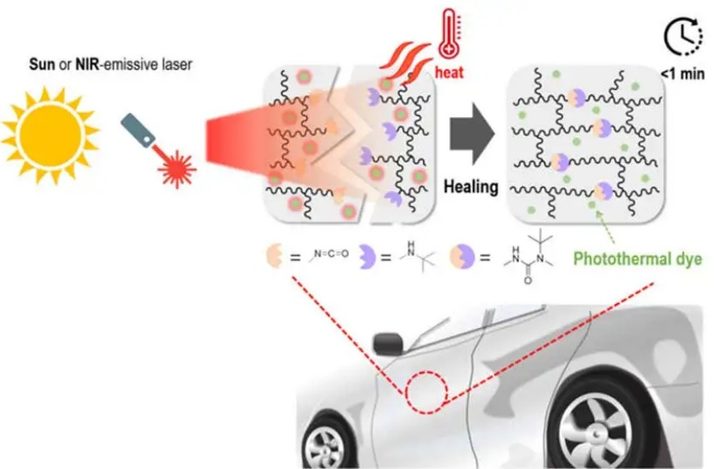 “Mejoraron un recubrimiento de resina protectora de alta duración con un material de red de polímero reversible basado en poliol acrílico, además de introducir un tinte fototérmico. El tinte absorbe la luz infrarroja del sol y la convierte en energía térmica, lo que aumenta la temperatura de la superficie de la capa protectora. Los enlaces químicos de la estructura polimérica del recubrimiento reaccionan al aumento de calor disociándose y luego recombinándose nuevamente, reconstruyendo lentamente la estructura polimérica dañada donde ocurrió un rasguño hasta que se repara por completo y desaparece”.