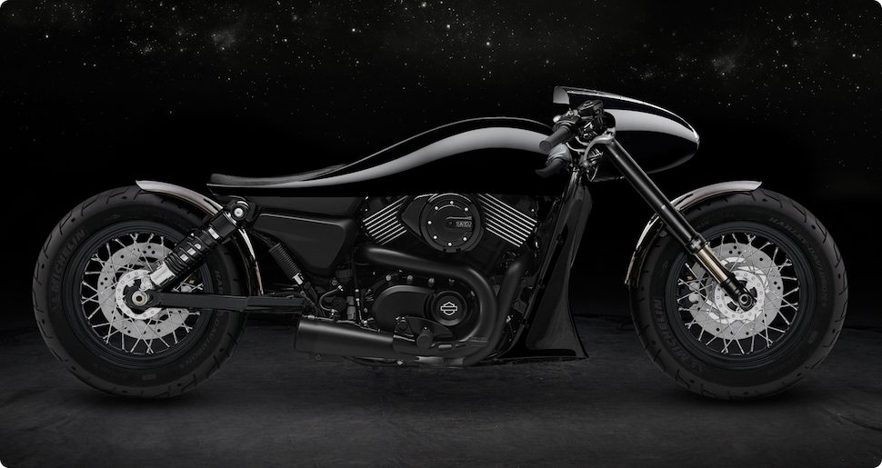 Estimadísimo Dart Vader, su motocicleta está esperando por usted. Viene con un motor Harley-Davison Street HD V-Twin de 750 cc. V-Twin, y debido a su mayor volumen, parece que la Dark Side podría ser más fácil de pasearse por las calles y carreteras de los Estados Unidos que los modelos más pequeños.