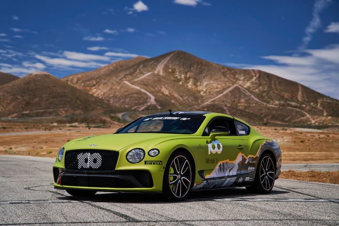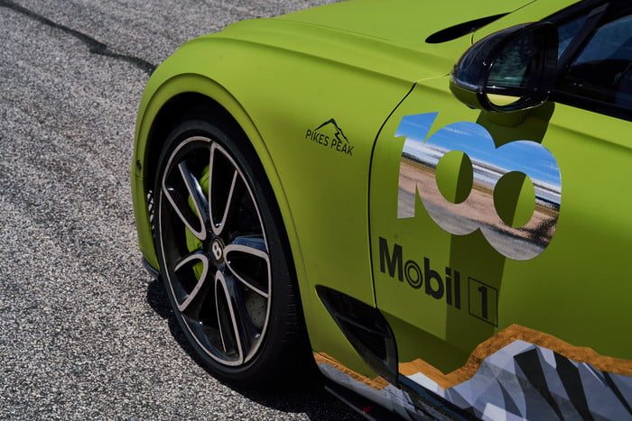 Durante la gloriosa jornada de este 30 de junio en las Rocallosas, el Continental GT lució el mismo verde eléctrico que la Bentayga vistió el año pasado y el número 100, porque en 2019 es el centenario de la casa europea.