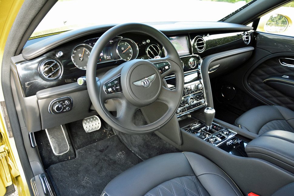 En el interior, la atención al detalle es asombrosa. Posee un nivel de refinamiento en la cabina que es difícil de poner en palabras. Para resumir, valga citar las propias palabras de Bentley: “Si algo parece cuero, lo es; si algo parece madera, lo es; y si algo parece algún metal, es justamente ése metal”. Cada componente se siente y se ve sólido. Si la cabina del Mulsanne fuese una habitación de hotel, sería un cinco estrellas Súper Lujo, o inclusomás.