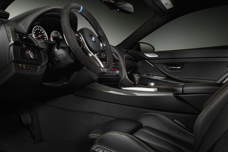 Lo que hace que el coupé BMW M6 Celebration Edition sea especial es su motor. El 4.4 litros twin-turbo V8 produce 600 caballos de fuerza y 516 libras-pie de torque, frente a los 560 caballos de fuerza y 500 libras-pie. del M6 estándar. Ese es el mismo resultado que el M5 30 Jahre, edición especial lanzada hace un par de años. El M6 comparte el motor del M5 (y muchas otras cosas), por lo que aplicar las mismas modificaciones no debió de ser algo muy complicado.