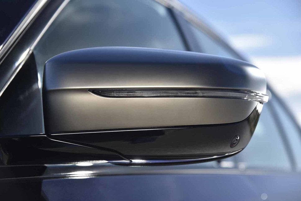 El alto rendimiento continúa en la cabina, con asientos deportivos para los pasajeros delanteros, pedales de aluminio y un volante de tres radios con costura azul que proporciona un contraste con la tapicería de cuero negro disponible. El M550i está claramente orientado al disfrute, aunque trae una larga y completa lista de ayudas electrónicas a la conducción.