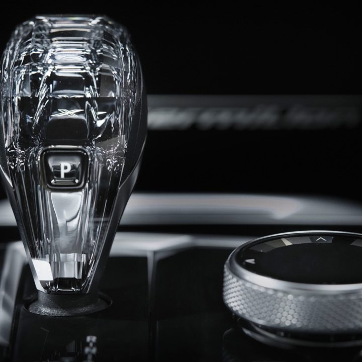 El color rojo continúa su paso hacia el interior de la SUV en ribetes y costuras en los asientos de cuero. En la consola central destacan el selector de cambios y el botón de encendido, ambos de cristal, y detalles en fibra de carbono en la botonería. El interior del techo, los parales y tapasoles están forrados en Alcantara.