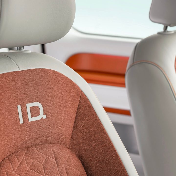 Volkswagen se vanagloria de no haber utilizado cuero real ni ningún otro tipo de material de origen animal en el interior de la ID. Buzz, donde solo hay acabados sostenibles. El volante por ejemplo, está forrado en un cuero sintético de poliuretano, que según el fabricante se ve y se siente genuino. Las alfombras, la tapicería y el forro interno del techo de la ID. Buzz usan materiales reciclados que incluyen botellas de PET y plásticos recuperados del mar.